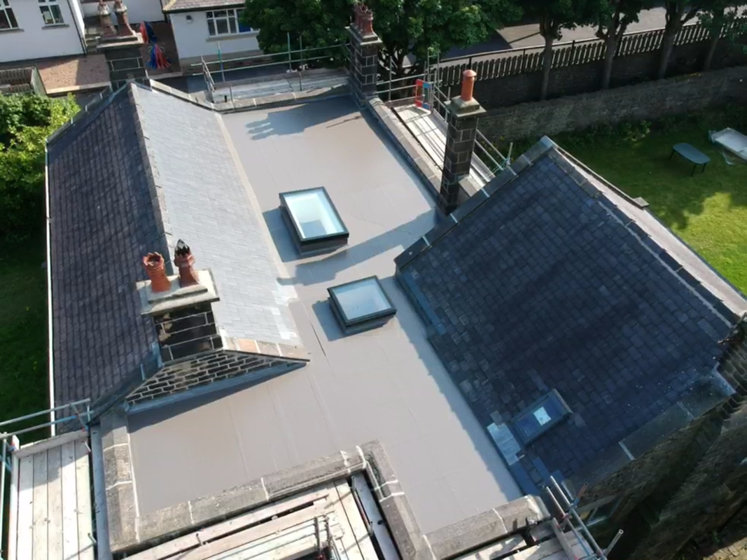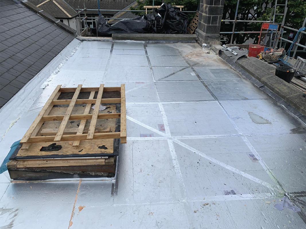 Whilst replacing the waterproofing aspect of the roof we also gave the house a thermal upgrade using a tapered insulation system. This system ensures no standing water on the roof and also adds the much needed warmth and energy efficiency to the old building.