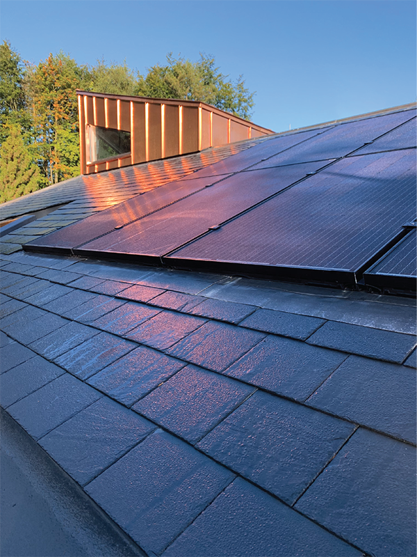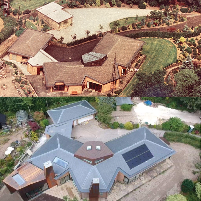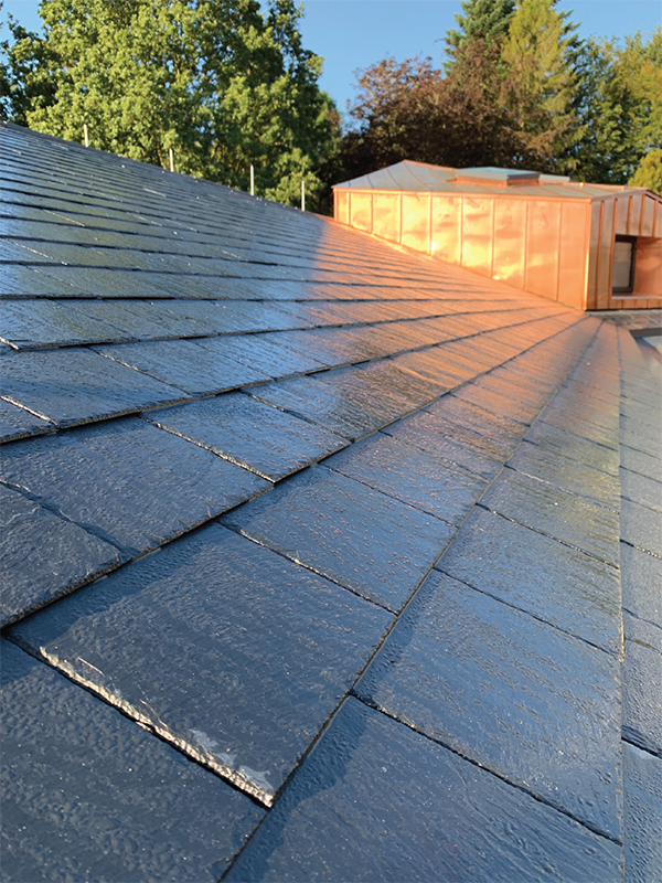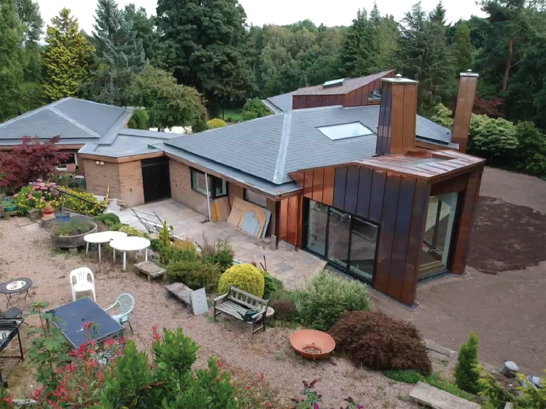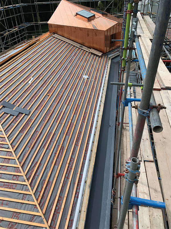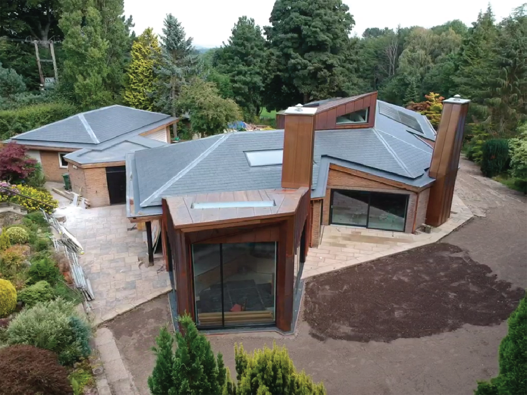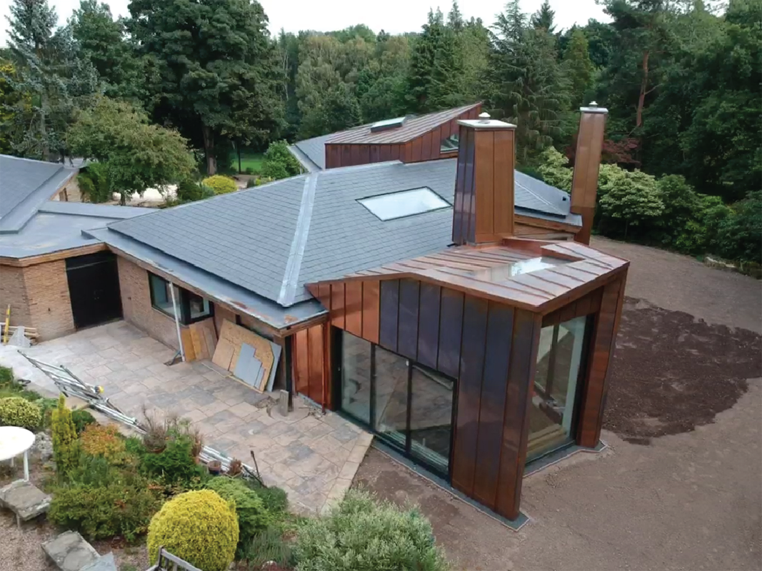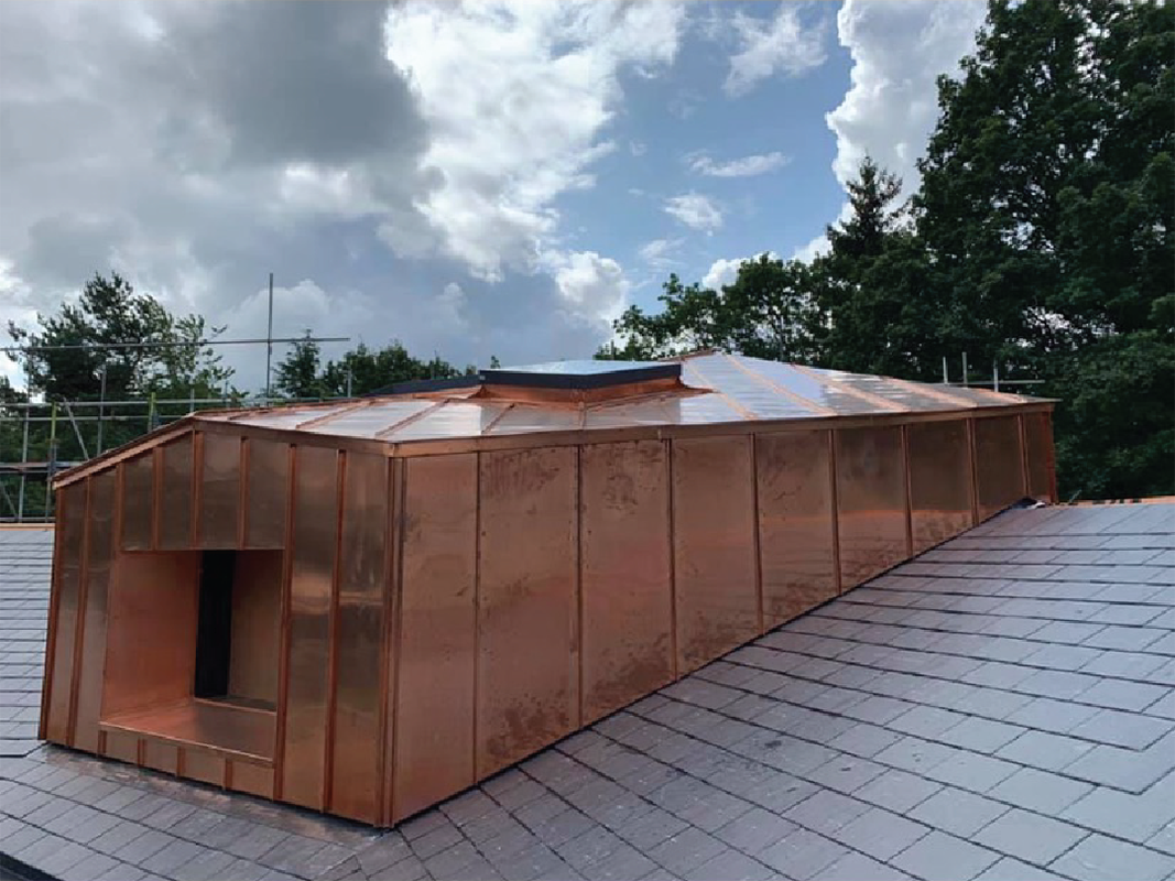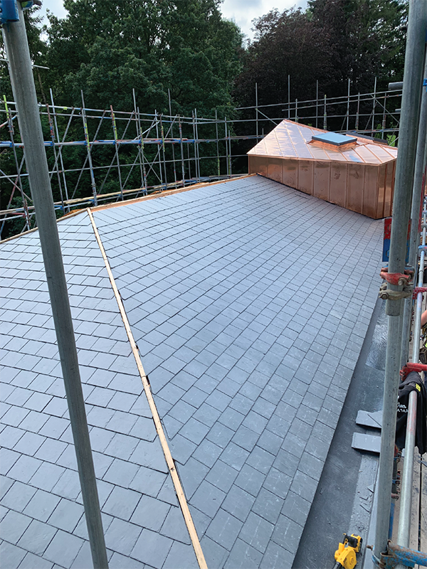 The copper extension and chimneys give that real modern twist to this roof but again will last the test of time, a great collaboration of materials that truly complement each other.