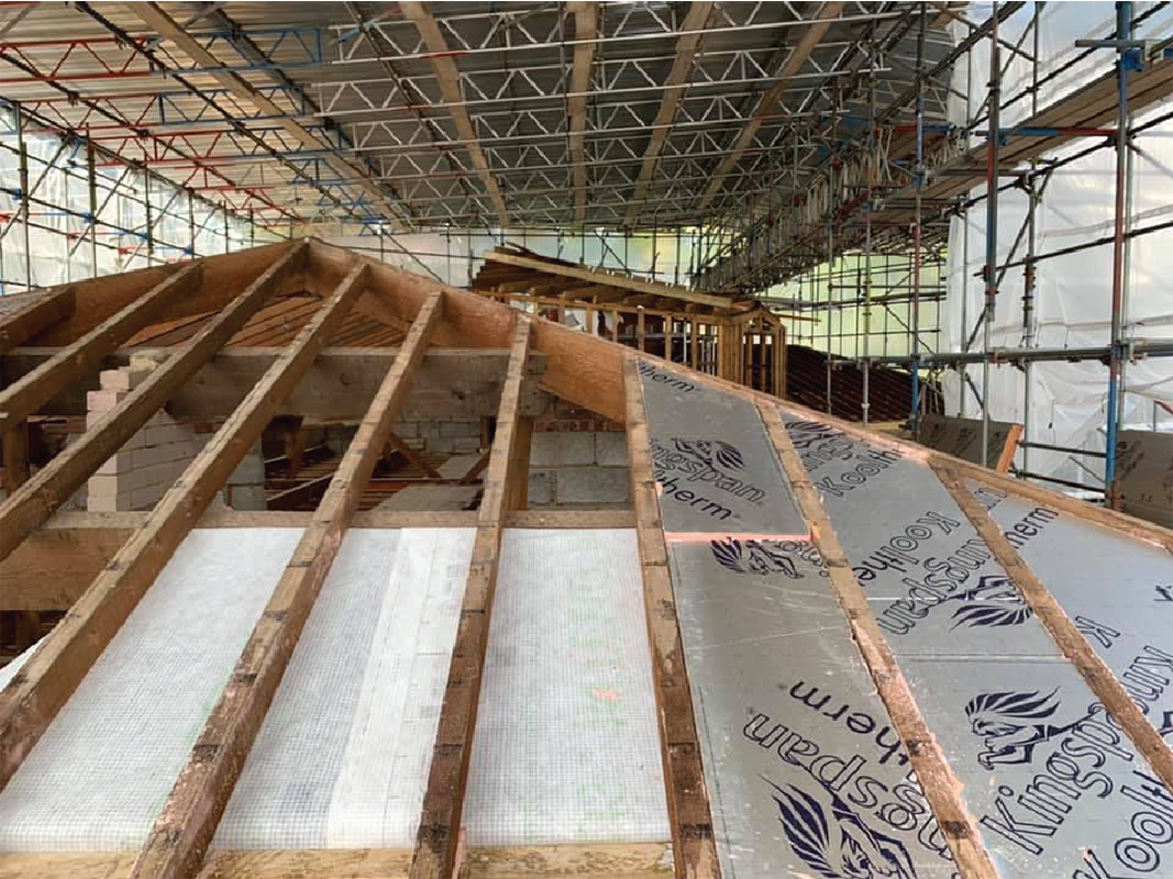 The traditional slate and lead details allowed us to use quality material that will stand the test of time as will the box gutter detail that runs right the way around this huge roof, formed from GRP with a life expectancy of 50 years plus, there was simply no other material for the job.