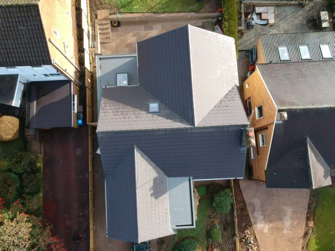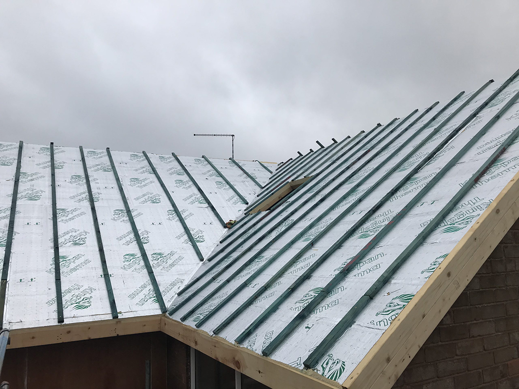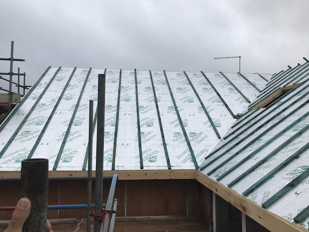 The roof on this one had a massive thermal upgrade to the roof externally rather than just internally to achieve much greater energy performance, the roof then finished in sandtoft caulderdale concrete tiles.