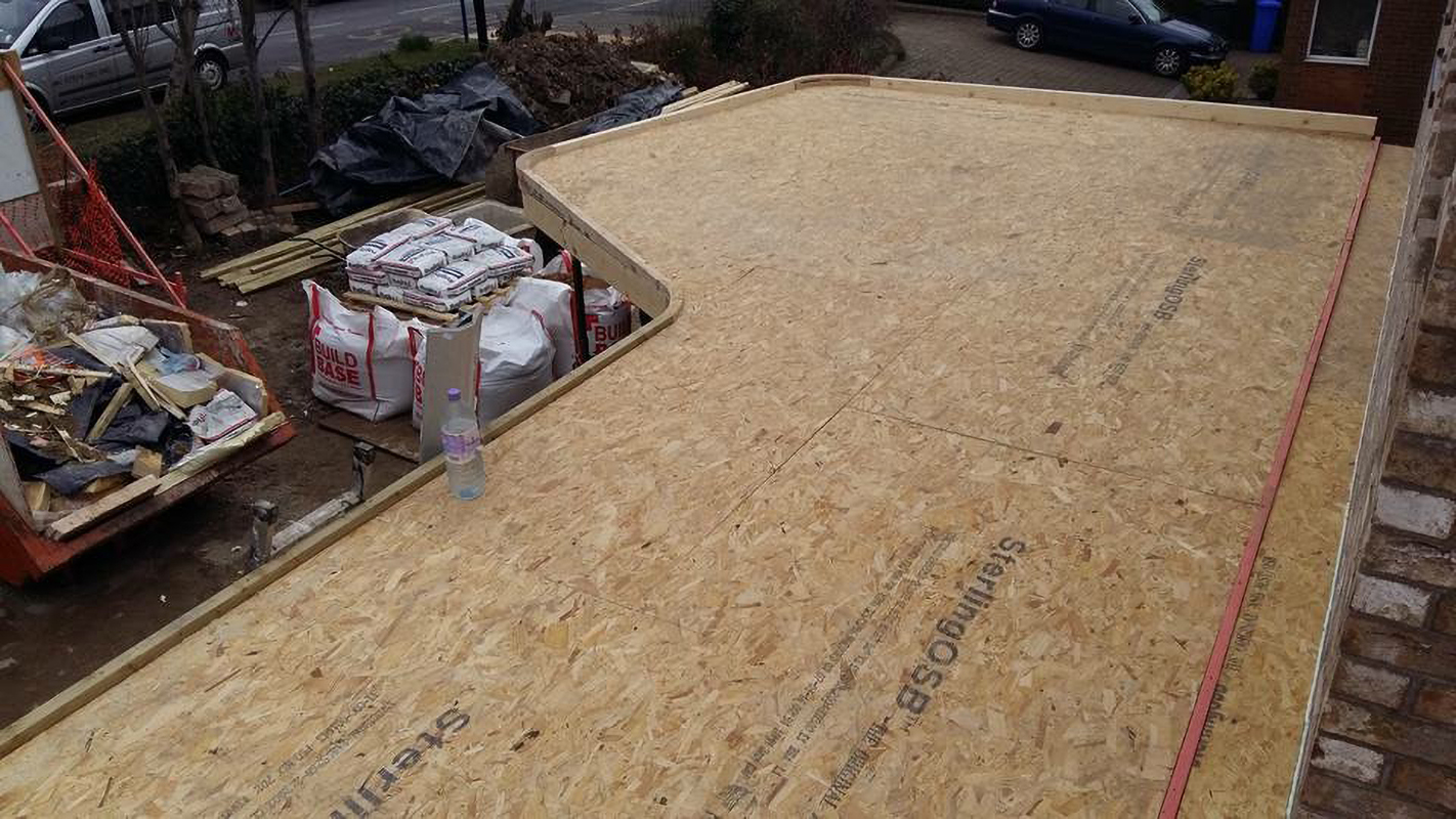 Our work here was the curved front porch/garage section finished in the bullet proof material that is GRP, clad with stunning cedar wood. It really sets off the grey entrance to the building.